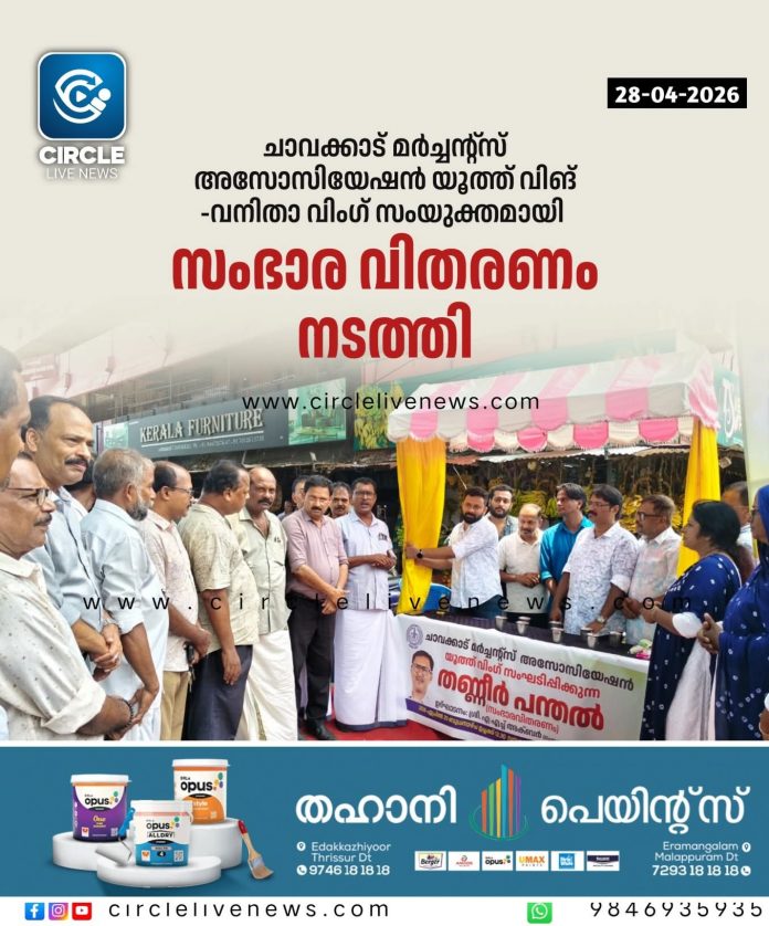 ചാവക്കാട്: ചാവക്കാട് മർച്ചന്റ്സ് അസോസിയേഷൻ യൂത്ത് വിങ് -വനിതാ വിംഗ് സംയുക്തമായി ചാവക്കാട് നഗരത്തിനും രണ്ടിടങ്ങളിലായി സംഭാര വിതരണം നടത്തി. ചാവക്കാട് മുനിസിപ്പൽ സ്ക്വയറിൽ യൂത്ത് വിങ്ങിന്റെ നേതൃത്വത്തിൽ നടന്ന പരിപാടി നഗരസഭ ചെയർമാൻ എ.എച്ച് അക്ബറും വനിതാ വിംഗ് നേതൃത്വത്തിൽ ബസ് സ്റ്റാൻഡ് പരിസരത്ത് നടന്ന പരിപാടി കെ വി വി ഇ എസ് ജില്ലാ സെക്രട്ടറിയേറ്റ് മെമ്പറും സി.എം.എ ജനറൽ സെക്രട്ടറിയുമായ ജോജി തോമസും ഉദ്ഘാടനം ചെയ്തു. യൂത്ത് വിങ് പ്രസിഡണ്ട് ഷഹീർ മഹാരാജ്, സെക്രട്ടറി ജെഫിൻ ജോണി,വനിതാ വിംഗ് ഗുരുവായൂർ നിയോജക മണ്ഡലം ചെയർപേഴ്സൺ കെ. രാജശ്രീ, യൂണിറ്റ് പ്രസിഡണ്ട് ഫാദിയ ഷഹീർ, സെക്രട്ടറി റസിയ ഷാഹുൽ, ട്രഷറർ രതി രാജൻ, സി.എം.എ ട്രഷറർ കെ.കെ സേതുമാധവൻ, വൈസ് പ്രസിഡന്റ് കെ.എൻ സുധീർ, സെക്രട്ടറിമാരായ പി.എം അബ്ദുൽ ജാഫർ, പി.എസ് അക്ബർ, എ.എസ് രാജൻ സെക്രട്ടറിയേറ്റ് മെമ്പർ ആർ.എസ് ഹമീദ് എന്നിവർ നേതൃത്വം നൽകി.